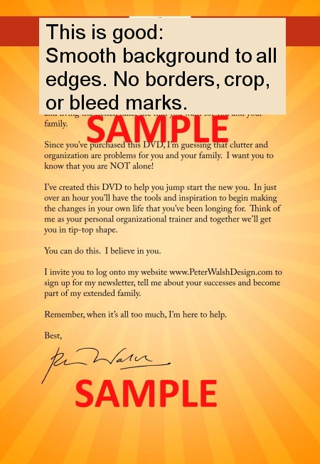 Good original image. In this example of a good DVD Overwrap image, the background goes smoothly to all edges including